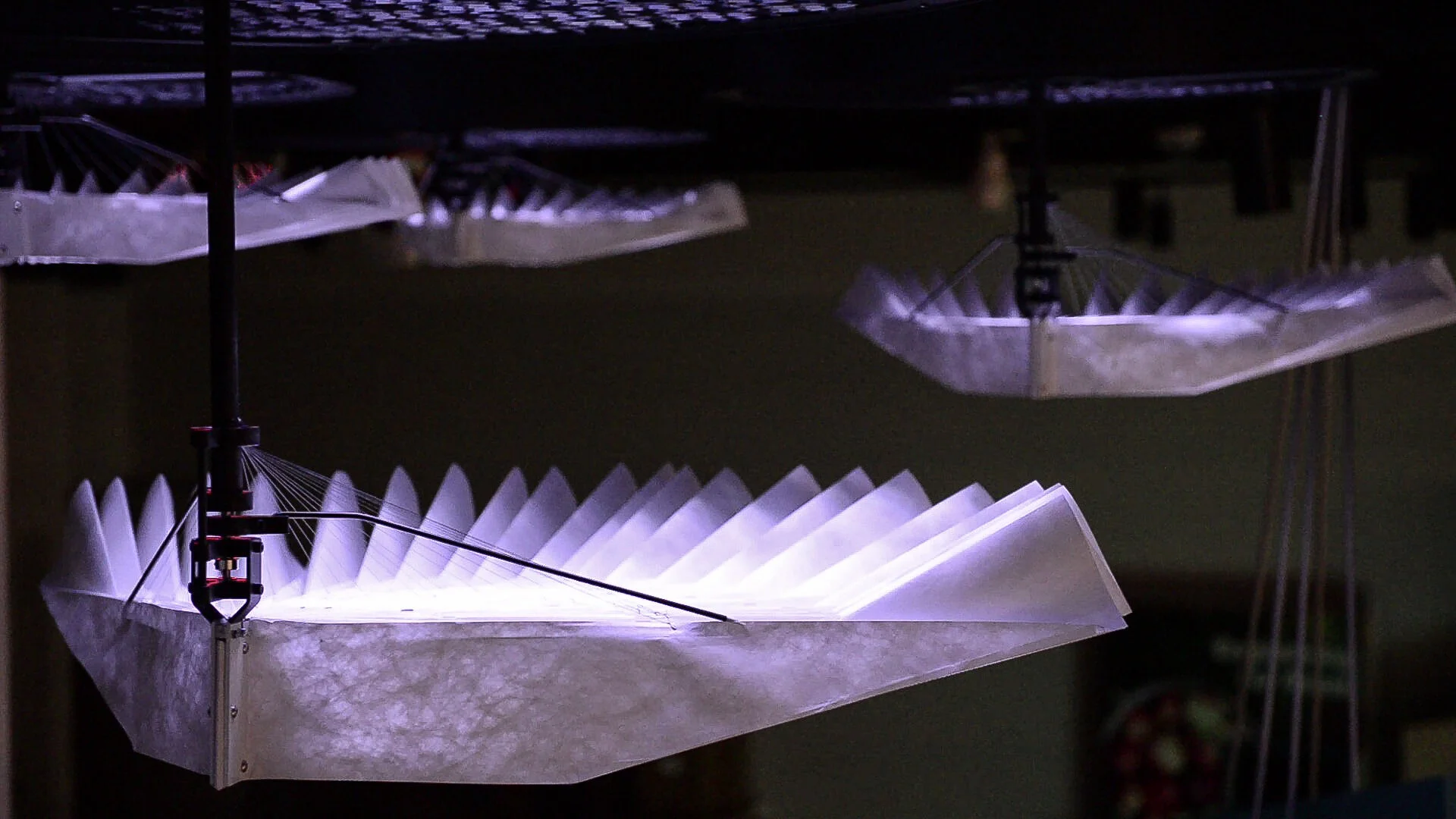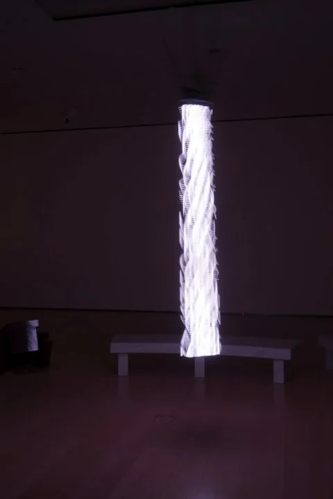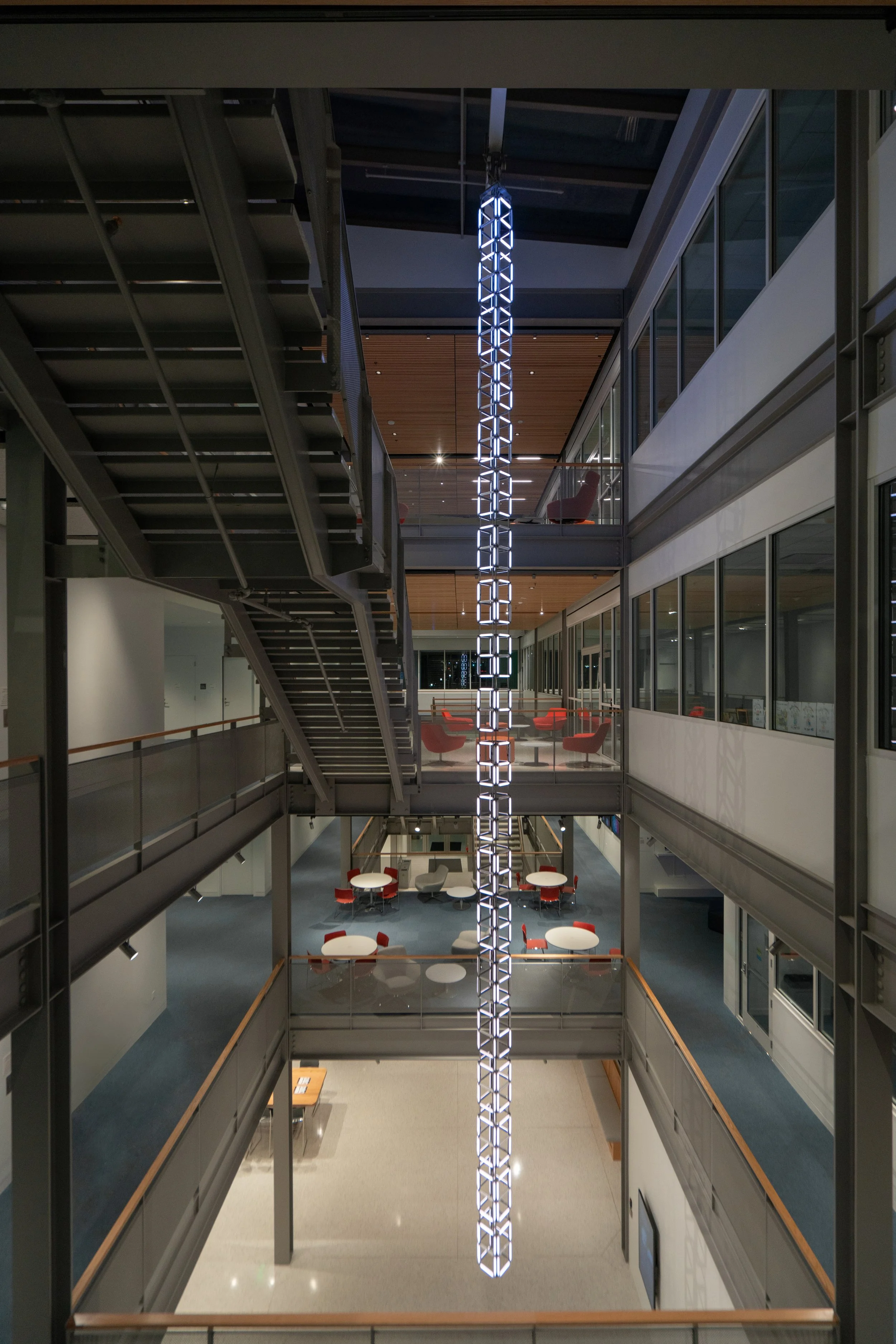 A web of thin cables is anchored by the arcs and holds an array of lights, suspended against the sky. These lights are frozen in a map of the constellations of stars in the night sky on April 30, 2019, at a moment when time stopped for all of those affected by this tragedy. Reed and Riley’s pillars are wrapped with commemorative bands that, when touched, send a kinetic wave of increased light intensity through the constellations above, signifying the network of those affected by gun violence. Light ripples quietly and slowly across the sculpture, representing the ever-present constellation of trauma, pain, and loss caused by gun violence.